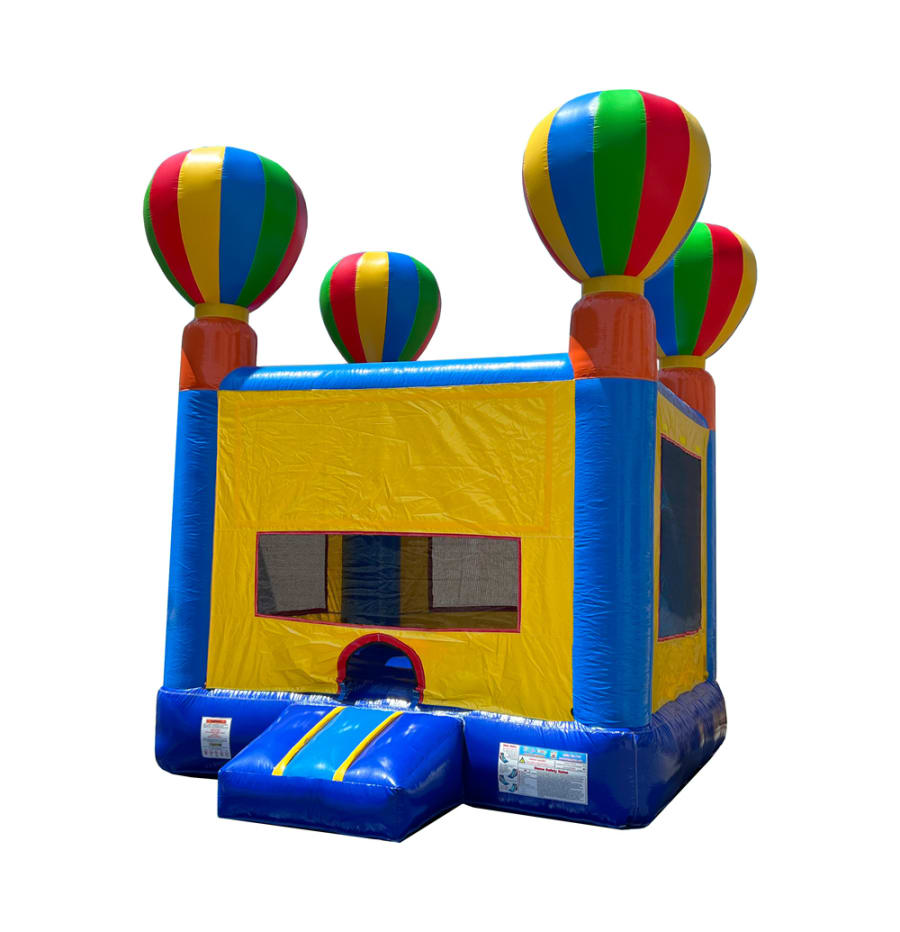 Up, up, and bounce! This brightly colored hot air balloon on each of the 4 corners design gives you that adventure experience. It’s great for any occasion. The inflatable safety ramp at the entrance protects excited kids as they scramble to get inside the bouncer. The large, netted windows allow a great view for parents and help the kids keep cool.